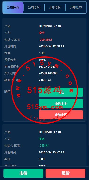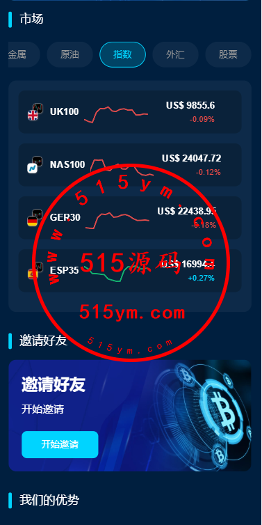 支持模拟账号,期权交易,合约交易,质押,信用分,贷款,实名认证等功能