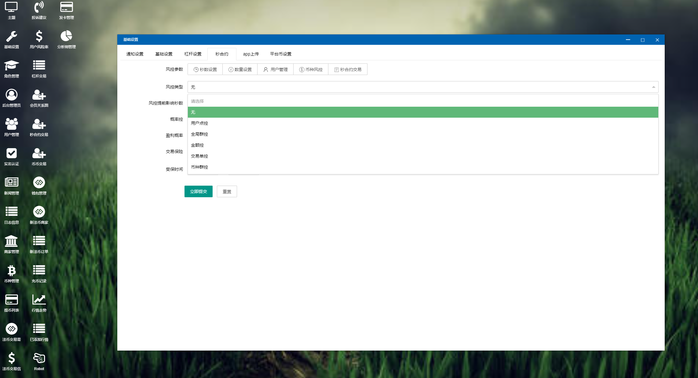 1、平台概况(实时行情、高端K线、合约交易、BI数据分析、币种统计、用户统计、交易统计、异常用户)