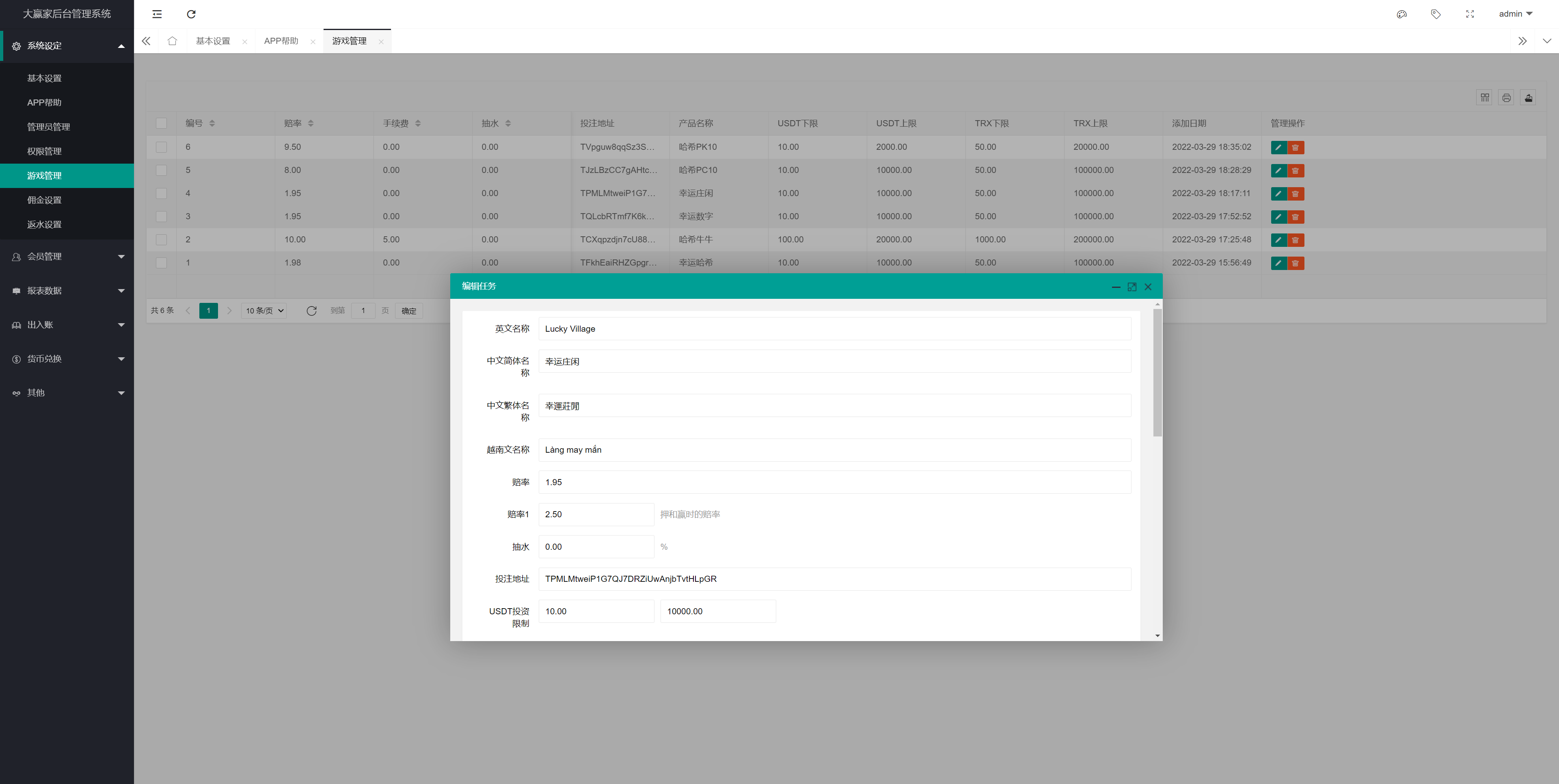 支持TRX兑换USDT功能,支持中奖审核打款