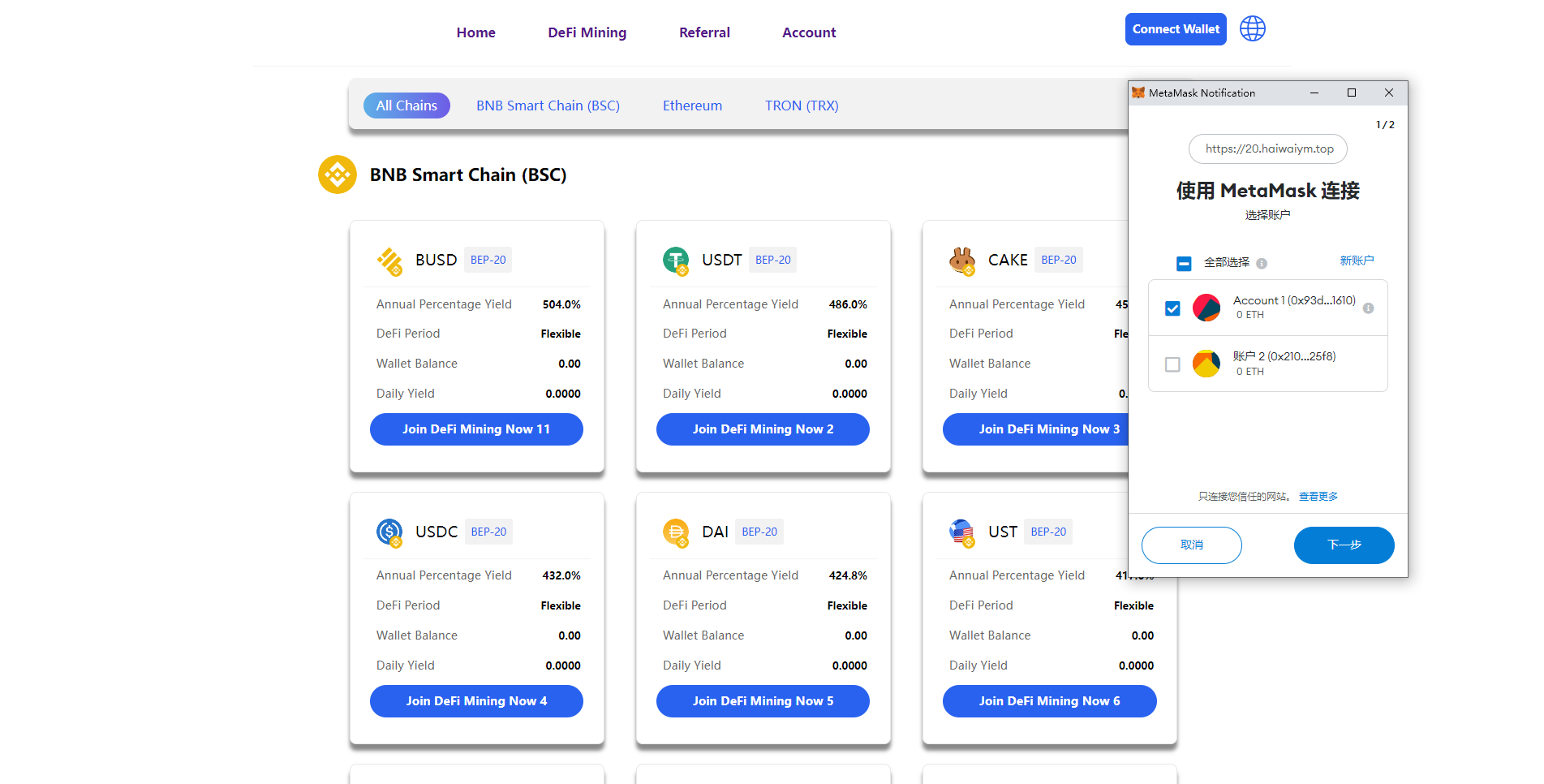 系统后台比较简洁支持BSC、ETH、TRX三链授权秒U