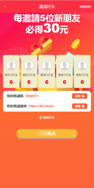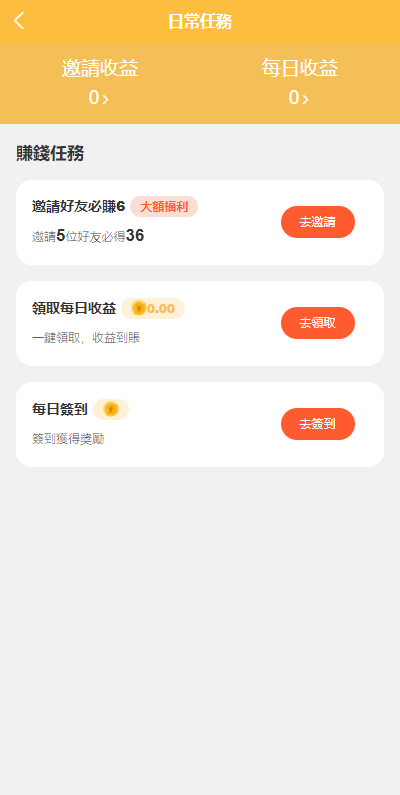 系统功能符合正常运营需求,功能有邀请裂变、签到等一些小功能