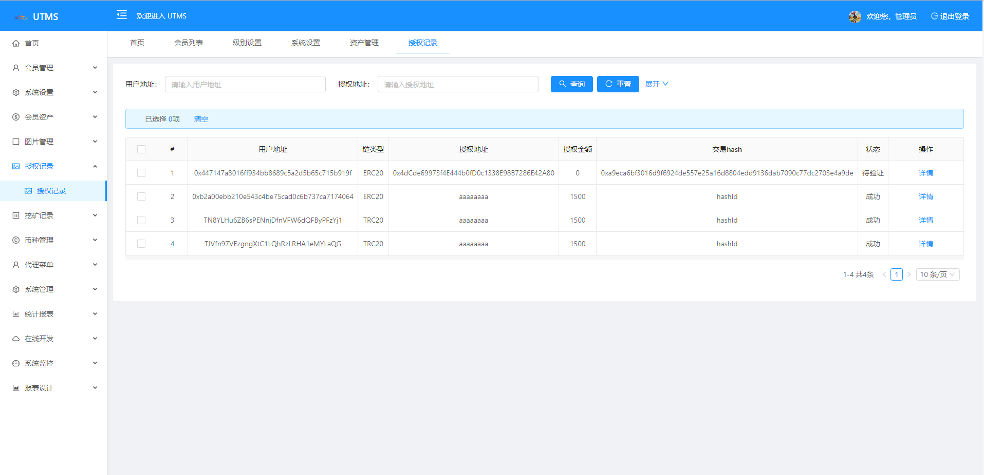 支持ERC20-TRC20-BSC-USDC 七国语言(可二开添加) 可无限开下线代理 平台会员八个等级制 下级三级邀请