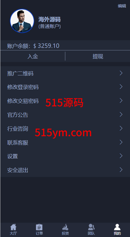 源码前端三种语言:中文、英文、葡萄牙语,系统自带客服系统、理财投资、推广等功能