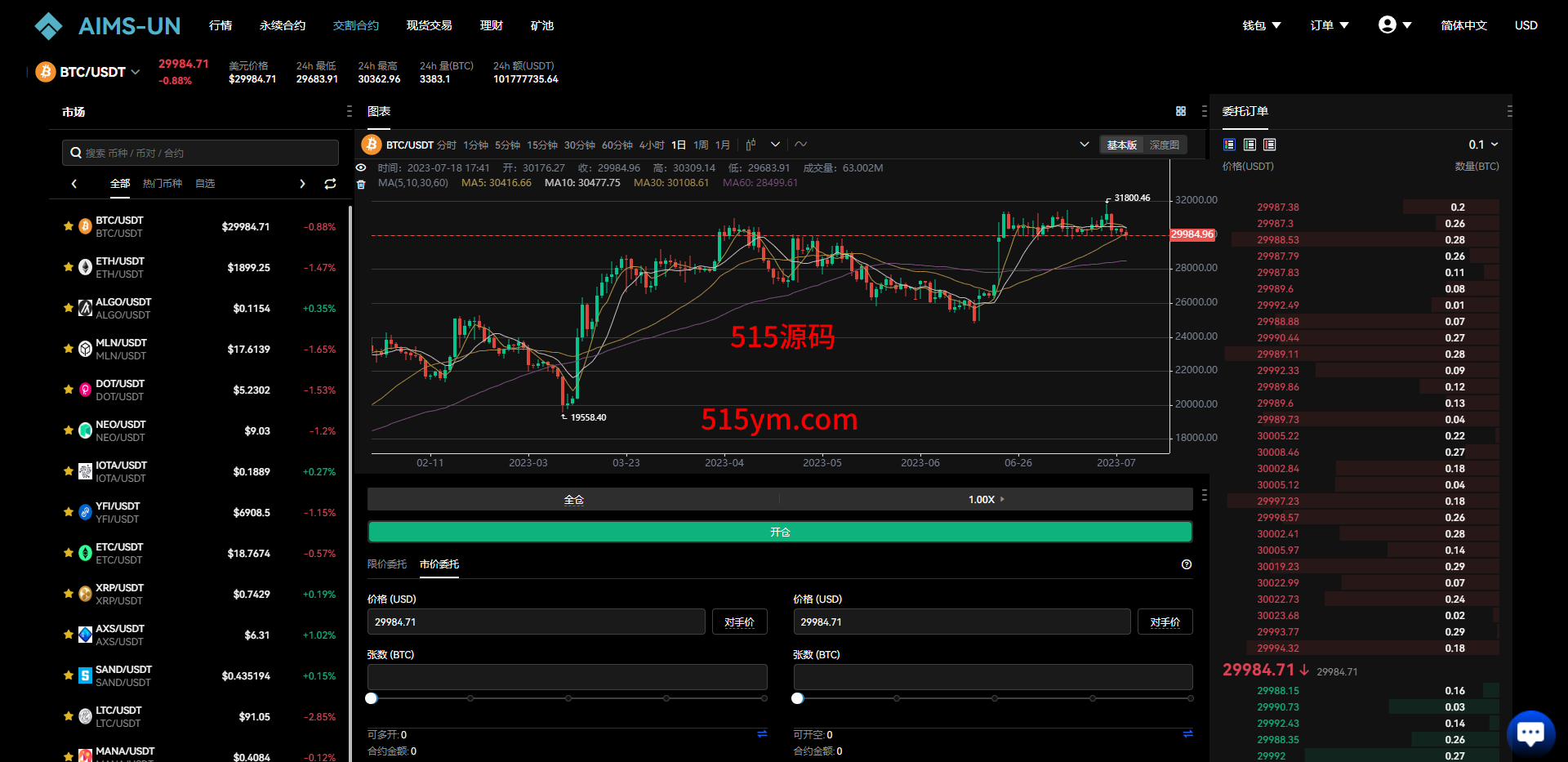 多语言交易所系统/永续交割合约交易/基金理财/锁仓质押