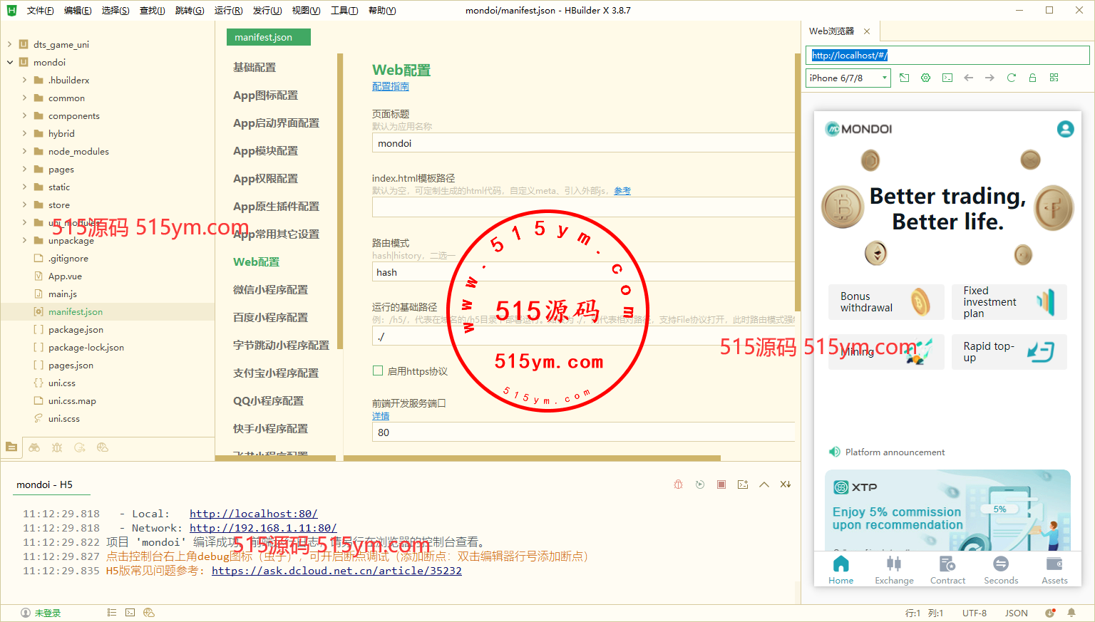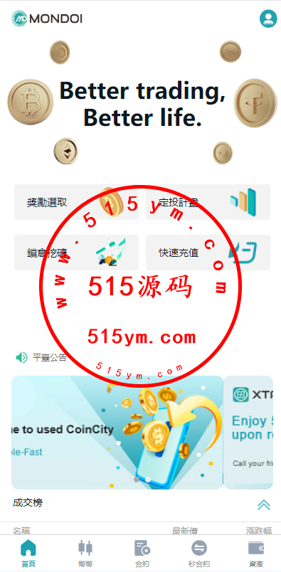 前端uniapp开发的带源码,后端php的laravel框架,K线是用go跑的