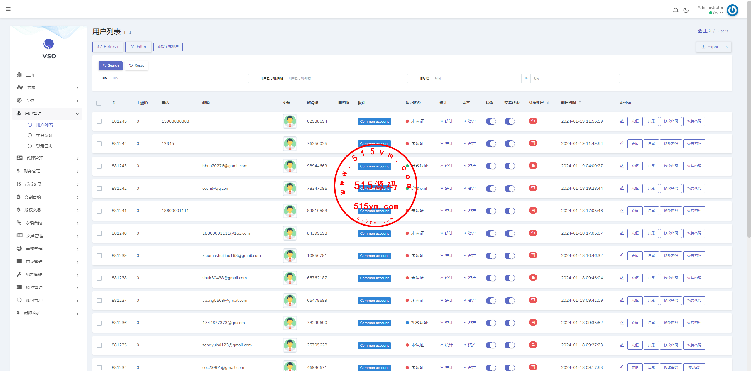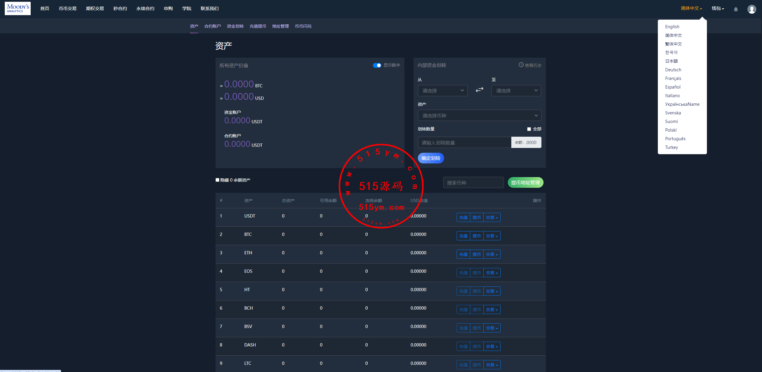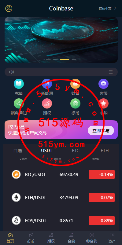 多语言虚拟币交易系统/质押/AI基金/期权/投票