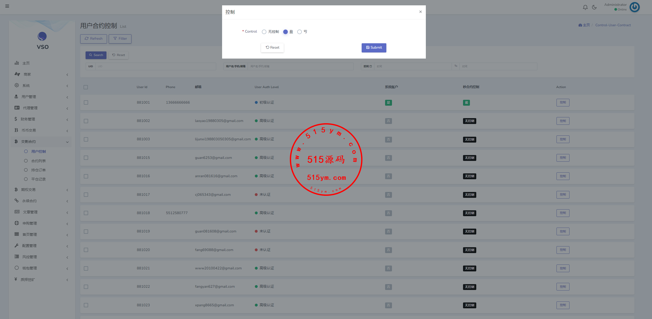 海外交易所系统/合约/期权/质押/秒合约/插针控制/申购