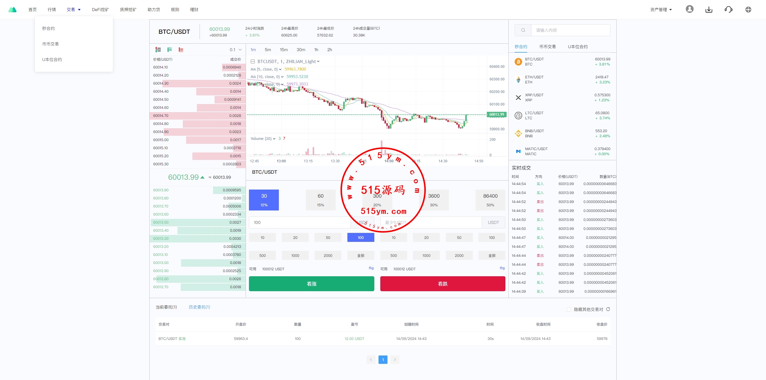 币币、U本位合约、秒合约、质押挖矿、助力贷、理财、代理、Ai智能控盘、推广三级分销等功能