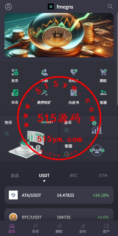 功能:币币交易,挖矿理财,申购新币,系统发行币,合约杠杆,秒合约交易,期权交易,平台币