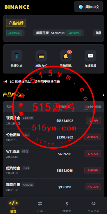 UI重新二开,仿币安风格带多语言