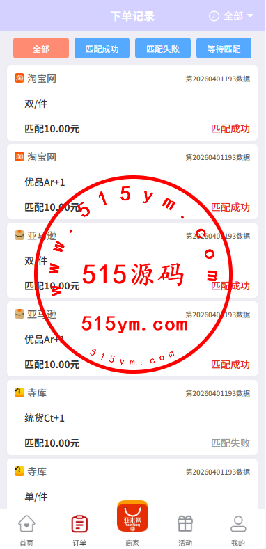 伪商城刷单系统/订单自动匹配系统/带预设/代理后台