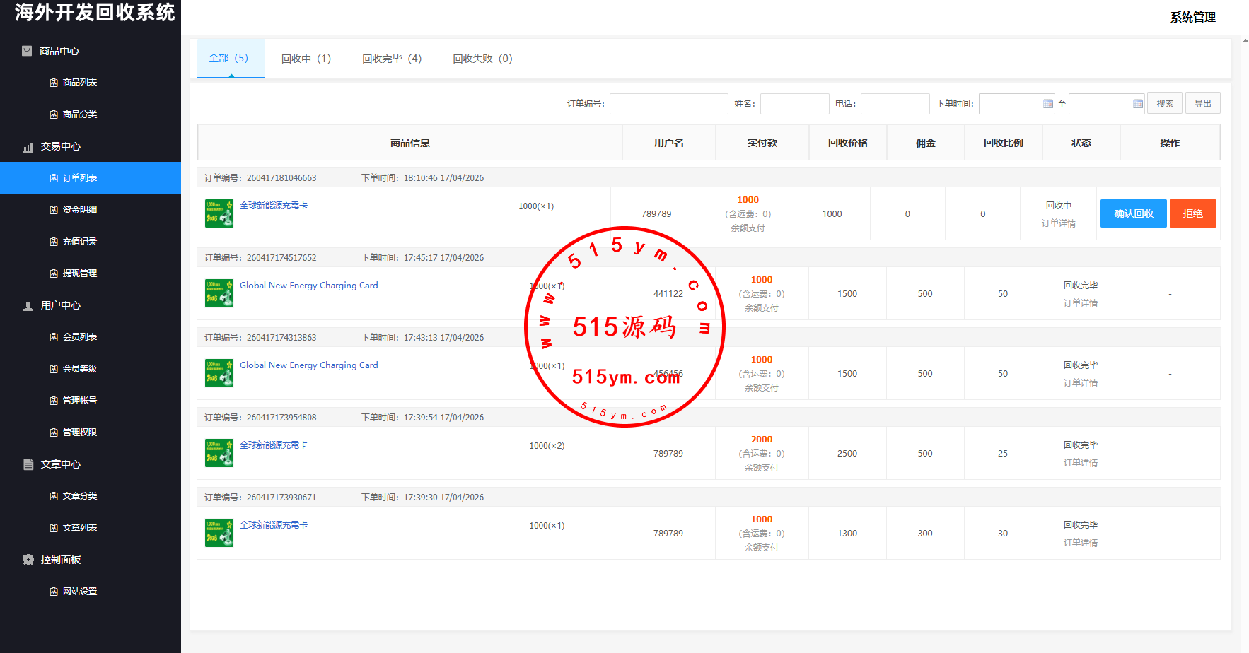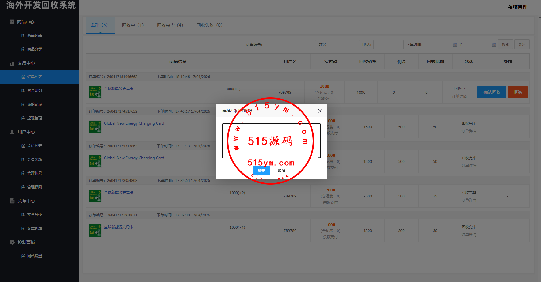 新版UI新能源商品回收系统,前端多语言支持自适应,系统支持:访问邀请码,自定义回收价格,信用分,充值汇率,默认货币,权限代理等功能