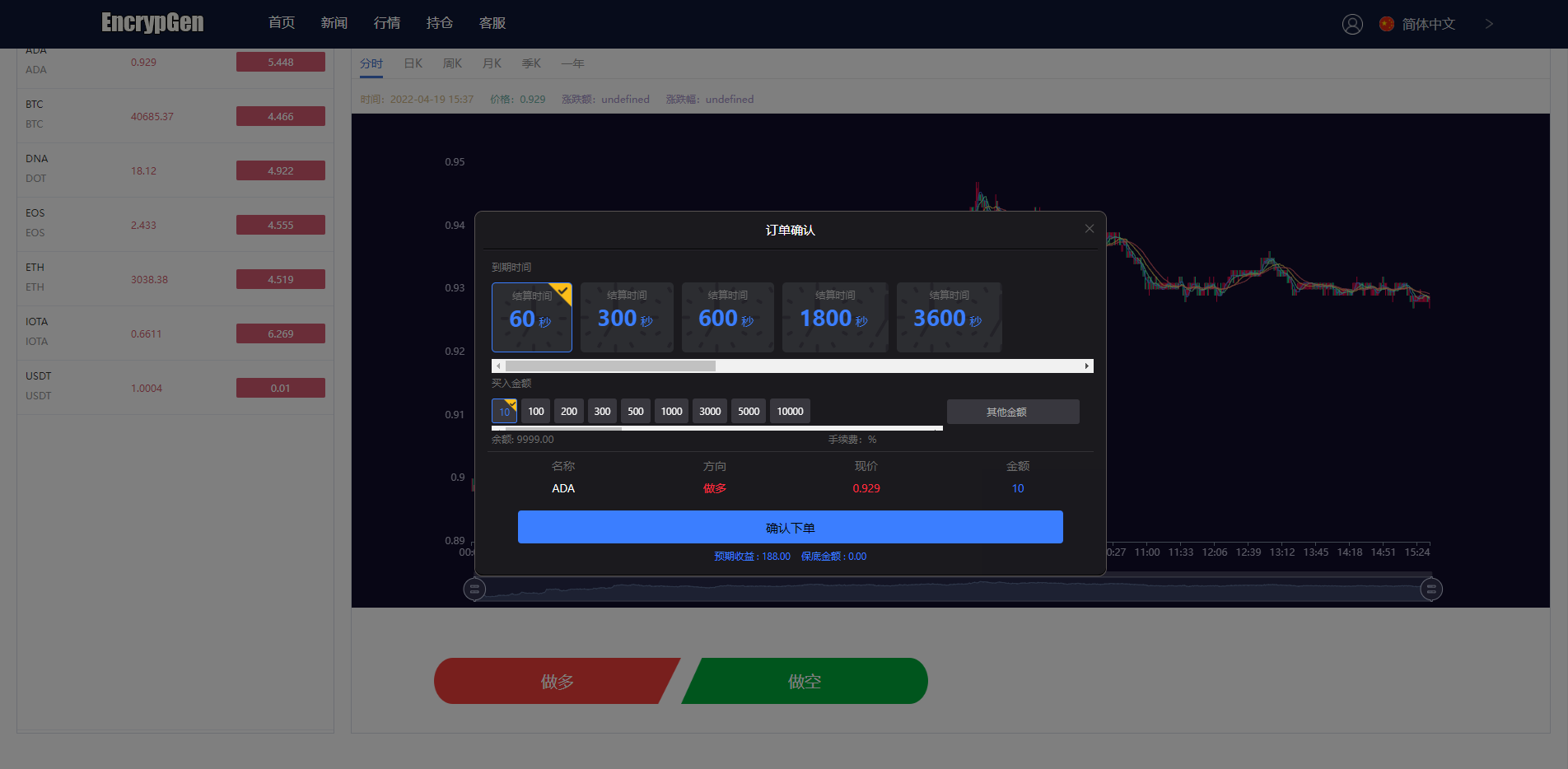 系统支持9种语言,实名认证等功能,USDT虚拟币充值,目前K线完美正常
