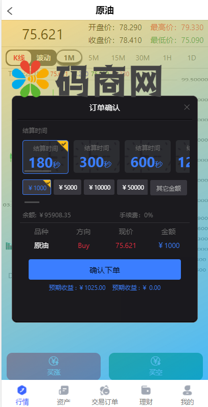 注意:系统需要在国外服务器安装,不然不显示K线(K线跳动有问题需要自行修复)