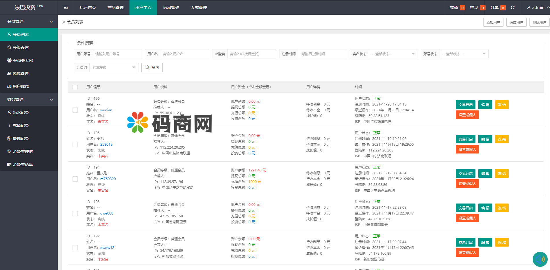 系统支付转账虚拟币支付,系统功能完善
