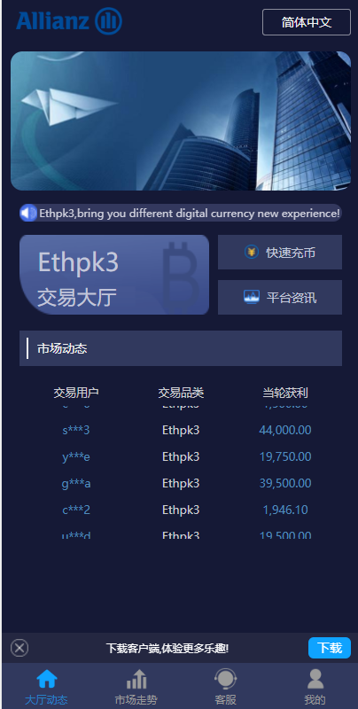28二开微交易系统/虚拟币跟单系统/多语言USDT充值