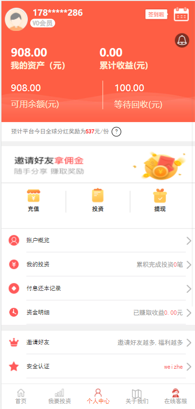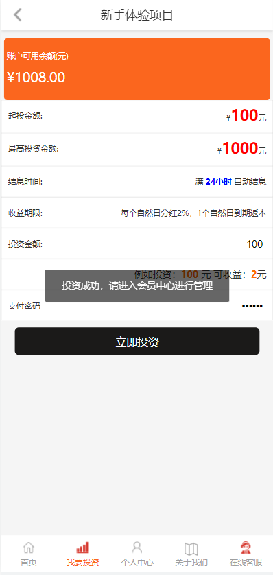 影视投资系统/投资理财/分红返利/自带客服系统