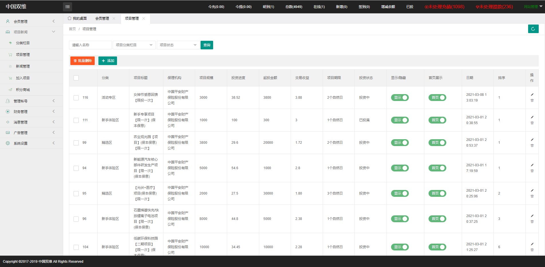 影视投资系统/理财众筹系统/余额宝分红/积分商城