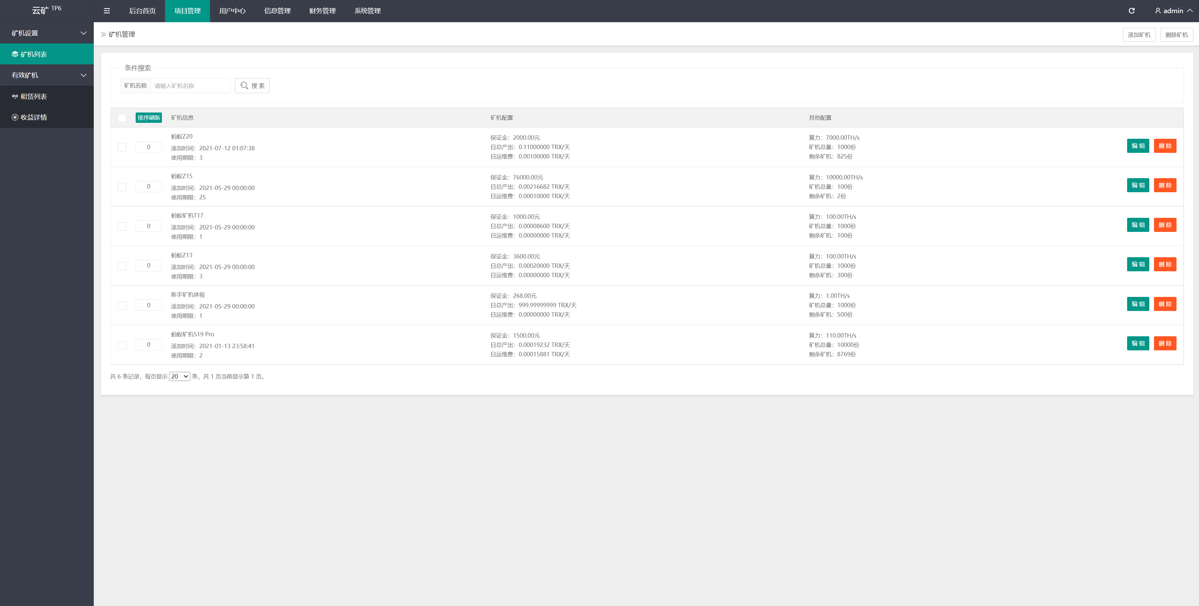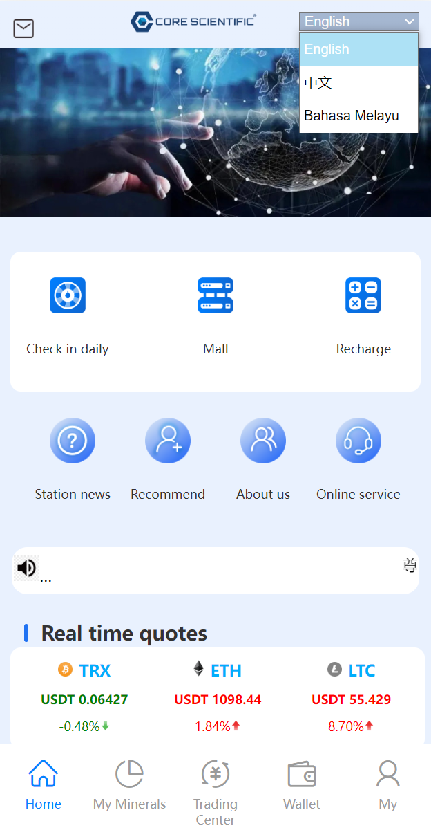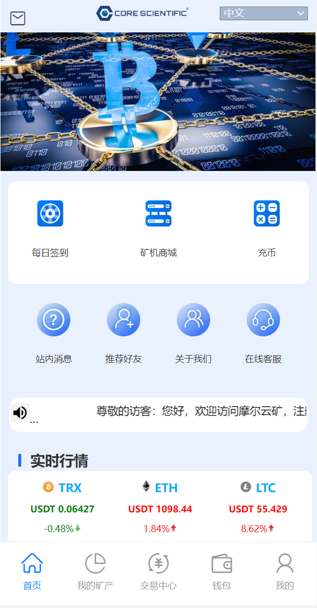 充币依然使用usdt充值,使用usdt购买矿机获取TRX收益