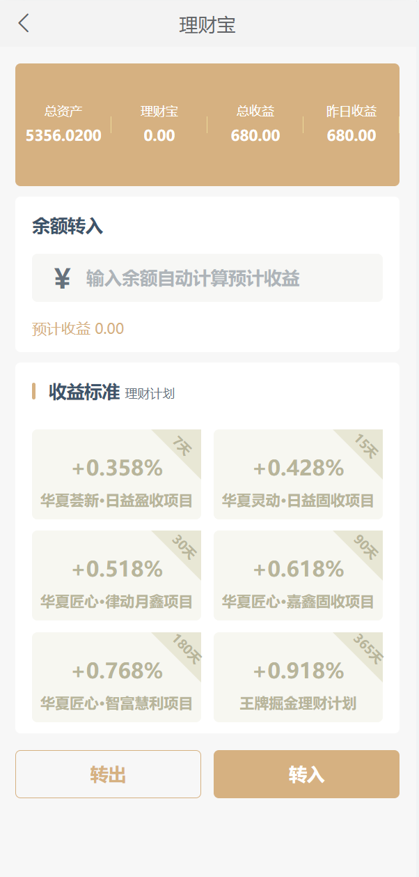 7,增加余额宝功能