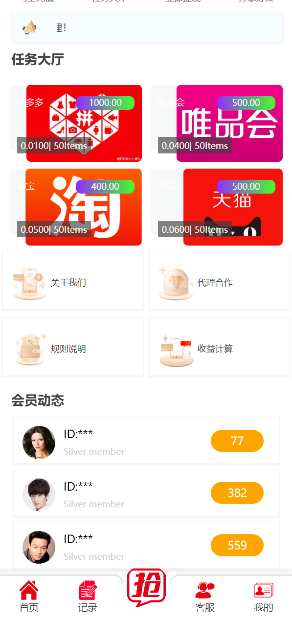 精美UI抢单系统/抢单刷单源码/订单自动匹配系统
