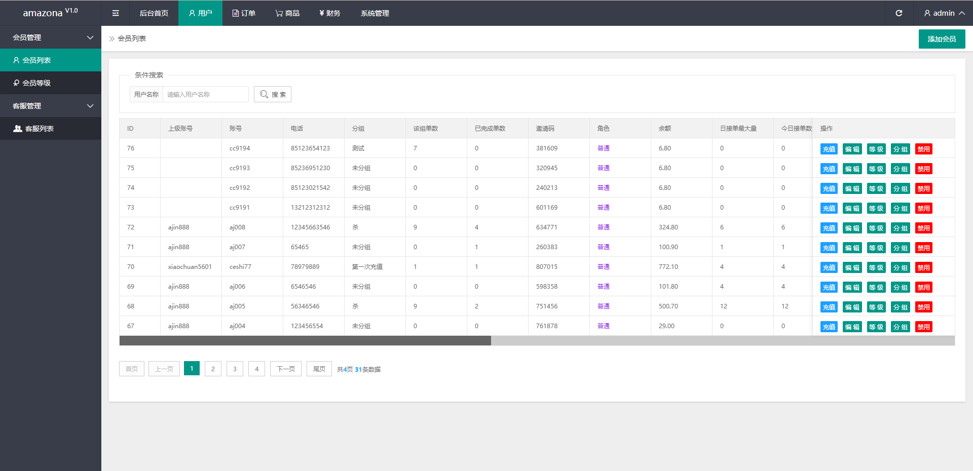 系统附带单独的代理后台,邀请功能-可自建团队,获得更多佣金,升级会员等