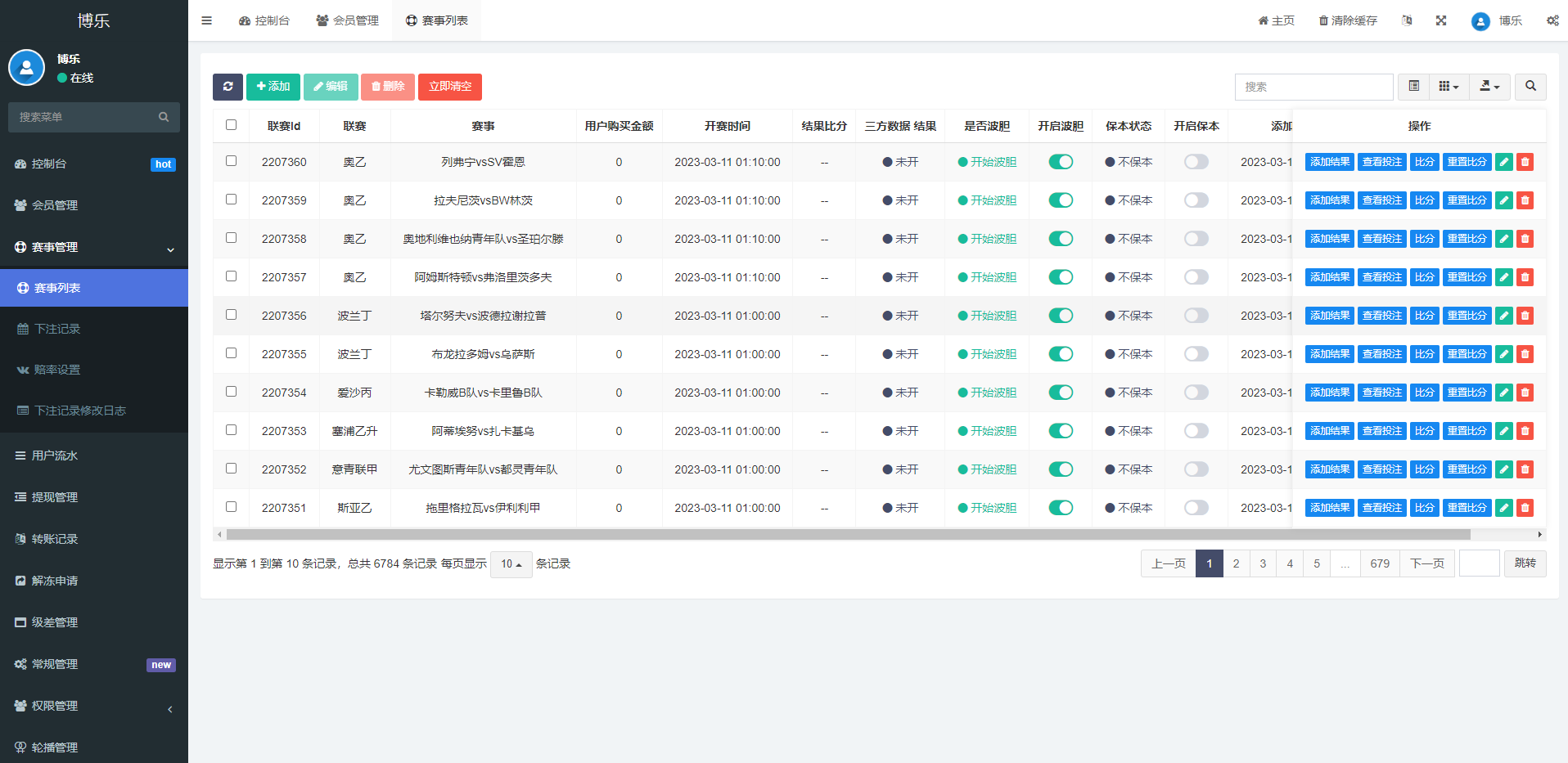 系统是FastAdmin框架开发的反波胆系统,前端是VUE带源码 会员互转等功能,默认对接的采集正常使用,开奖后台手动