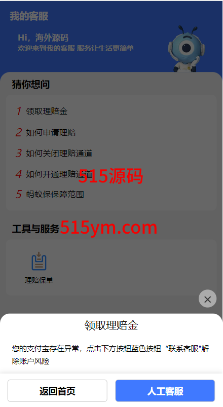 一款支付宝理赔系统,每个用户可单独设置客服跟理赔选项内容