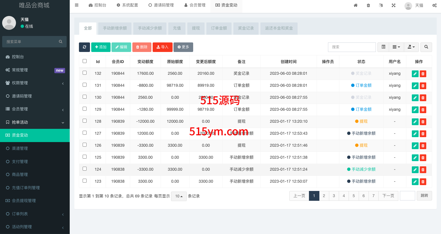 系统模式就是前端注册会员联系客户充值余额