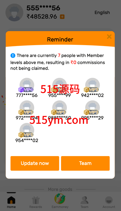 一套海外的拼团回购投资理财系统,前端英文跟印地语
