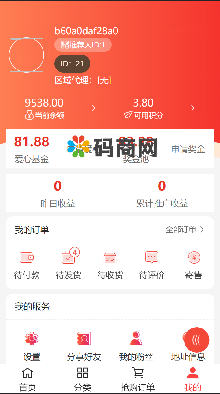 注:3个5%每笔收益均扣除,首页显示总奖金池和总爱心基金;个人中心显示个人贡献的奖金池和个人贡献的爱心基金,显示个人中奖记录及返现记录