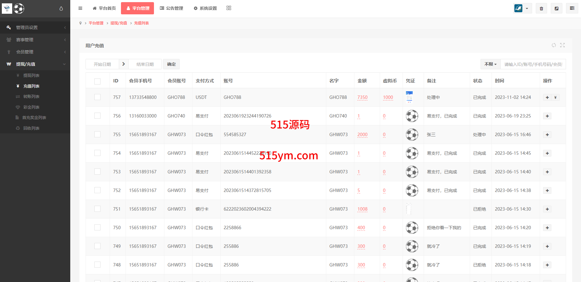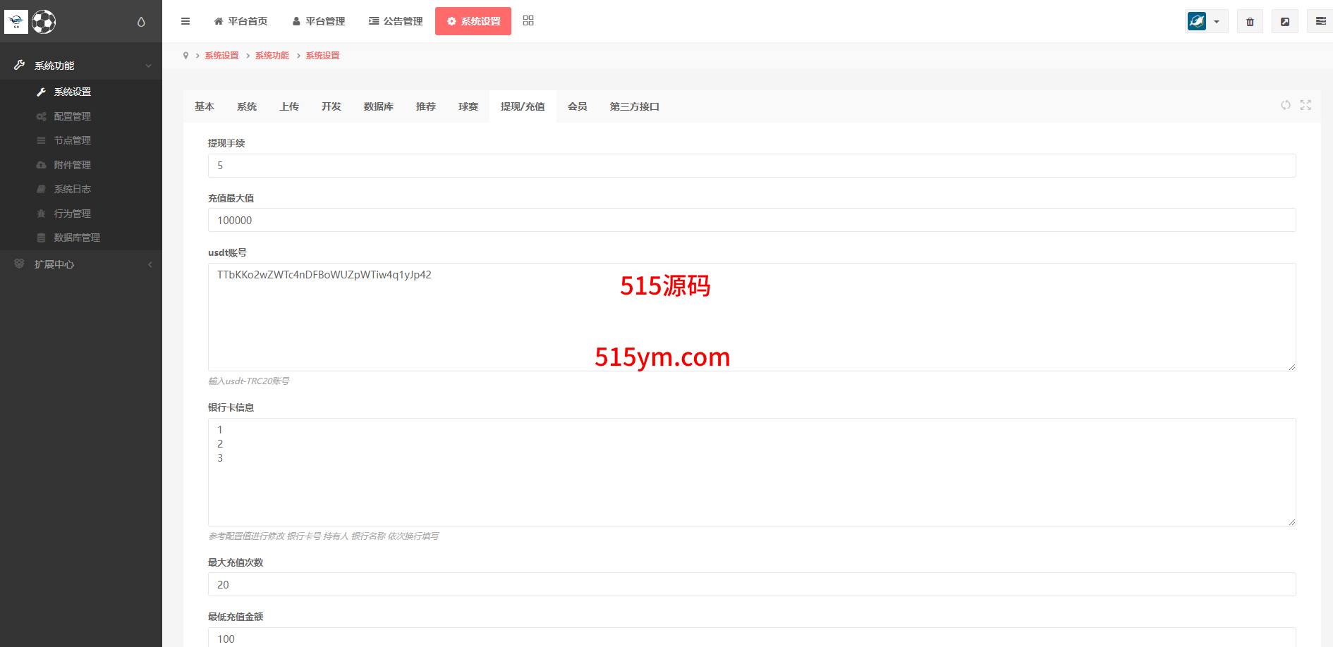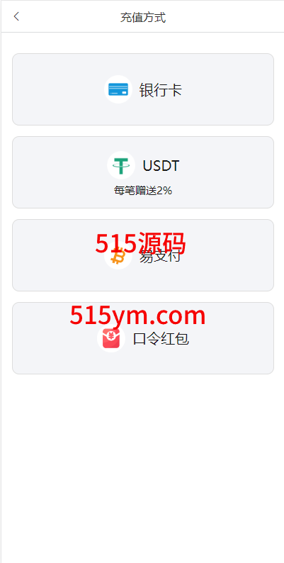 支持用户余额互转,充值方式有银行卡、usdt、口令红包、易支付,ng钱包互转余额,后台带回收功能