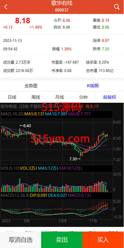 K线数据完整对接,分时走势正常