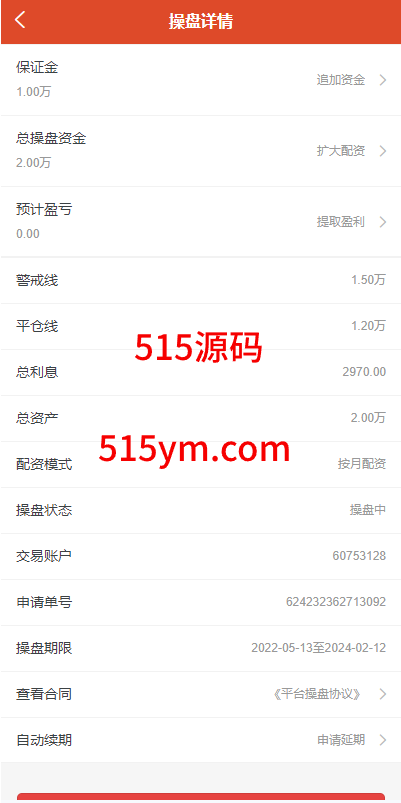 系统设有预警线自动平仓线,可按天配资,按周配资,按月配资,到期之后自动延期扣除手续费即可