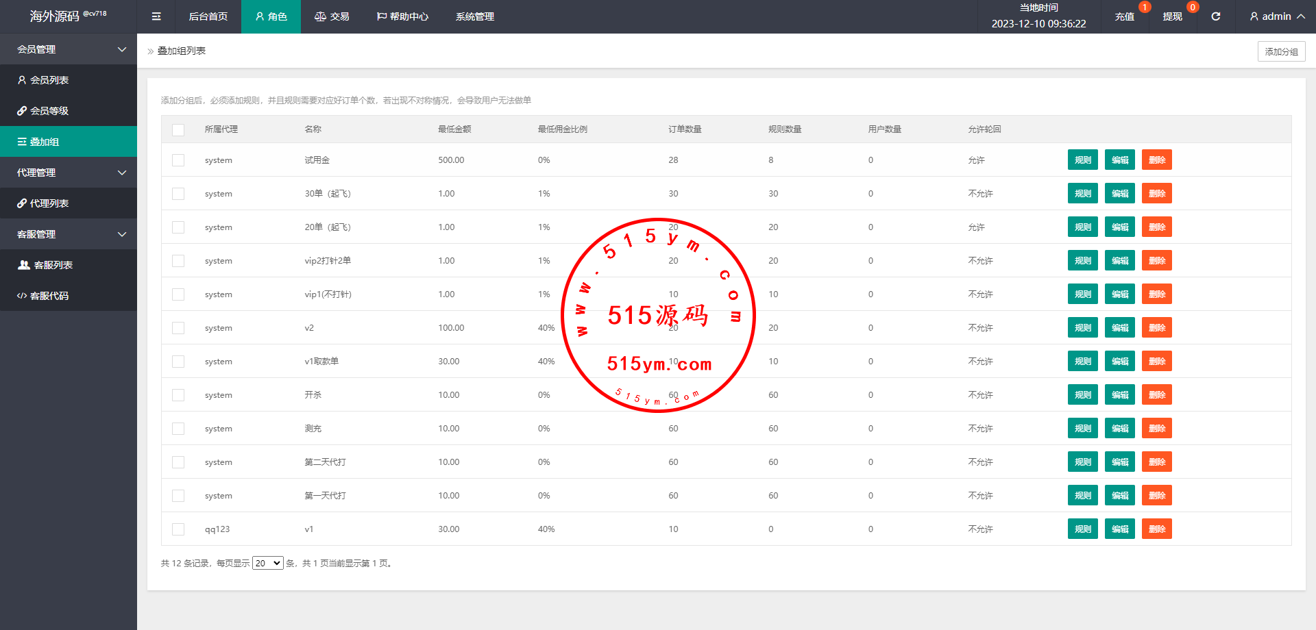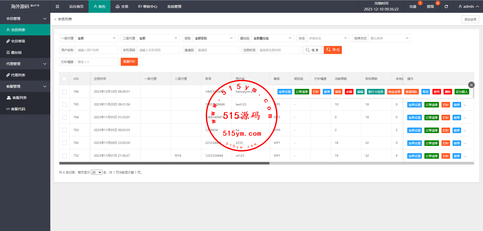 系统支持连单卡单、叠加租、打针、权限代理等功能