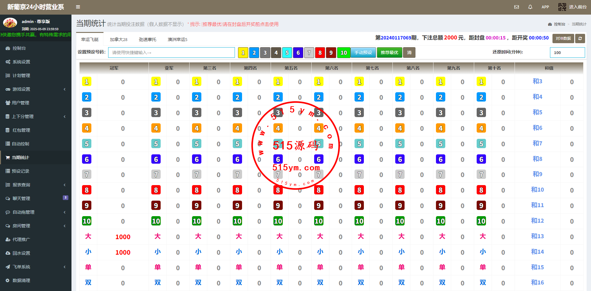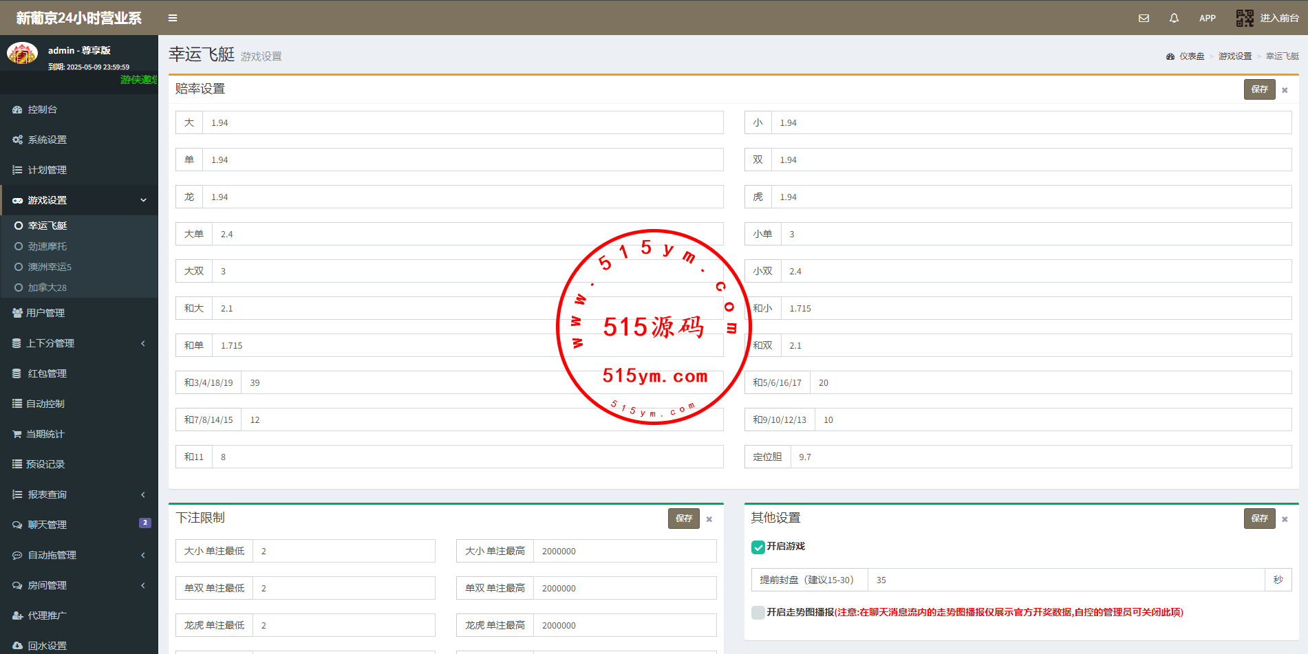 系统二开的功能比较多,可无限开房,智能控制,开奖预设,手动开奖,对接第三方付费采集,具体看图