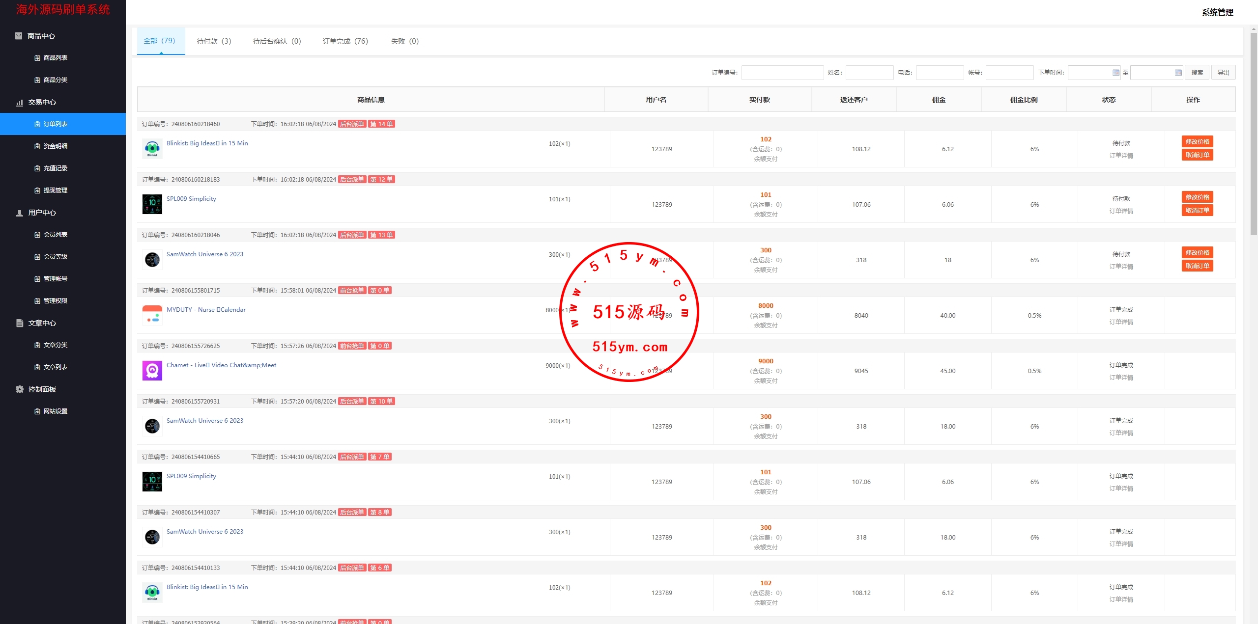 海外奢饰品抢单刷单系统/卡单连单/信誉分/海外刷单