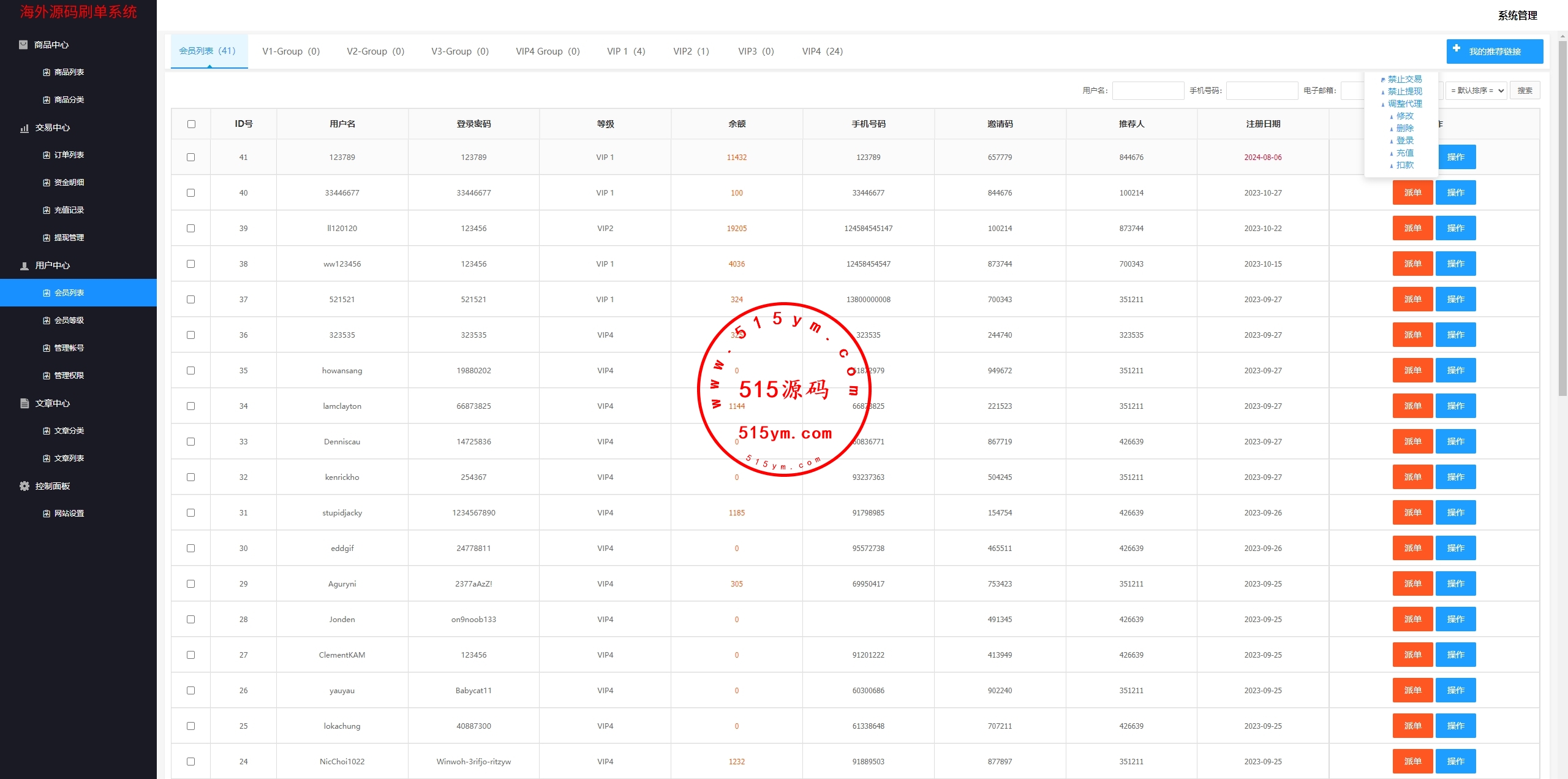 运营版抢单刷单系统/打针/做单/会员跟踪/信誉分