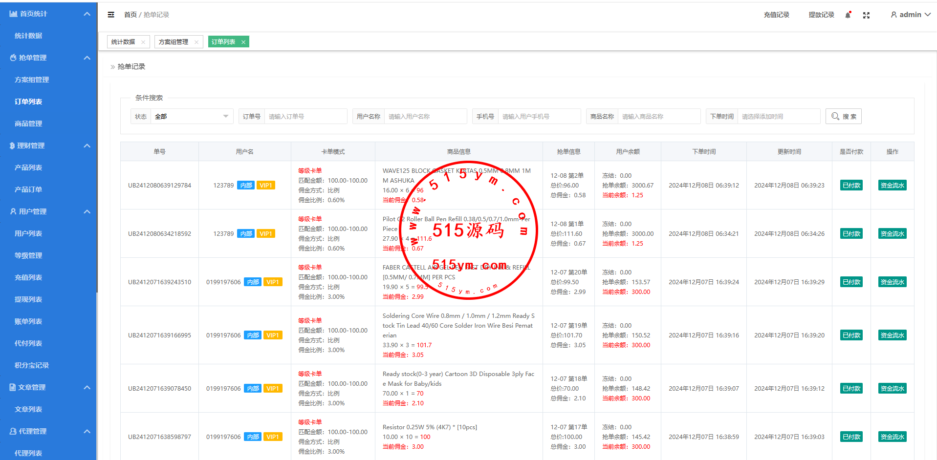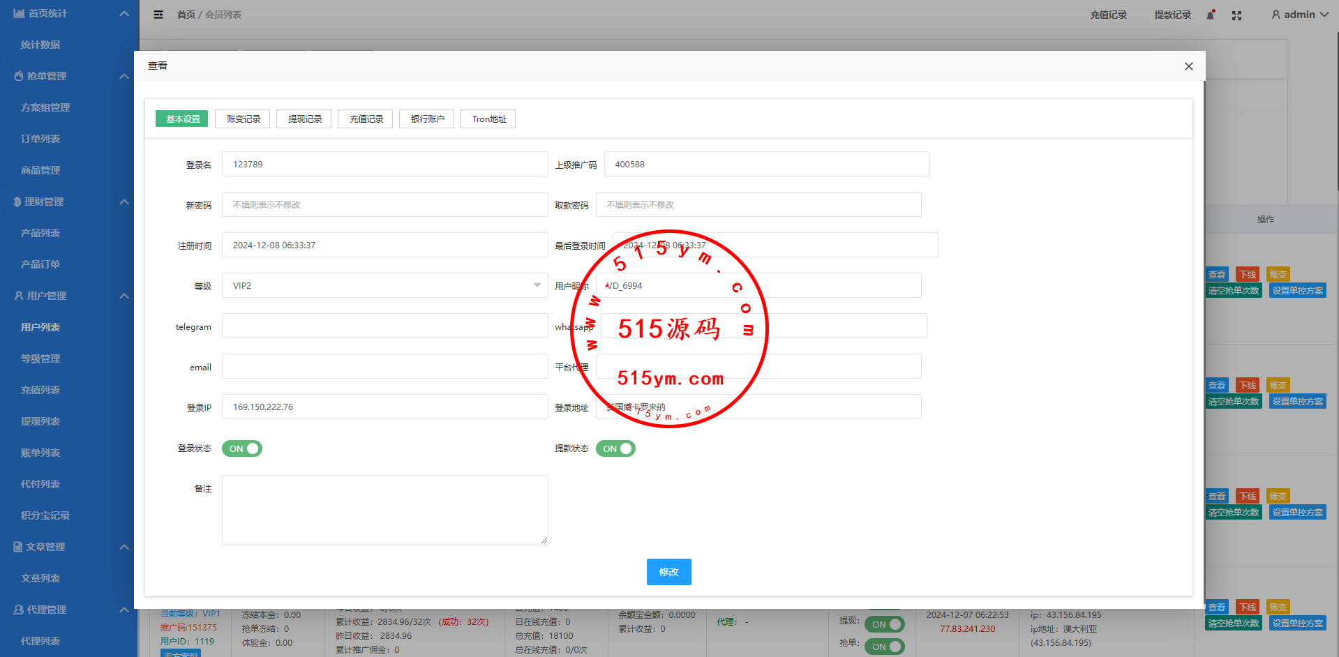 运营版抢单刷单系统/打针/做单/会员跟踪/信誉分