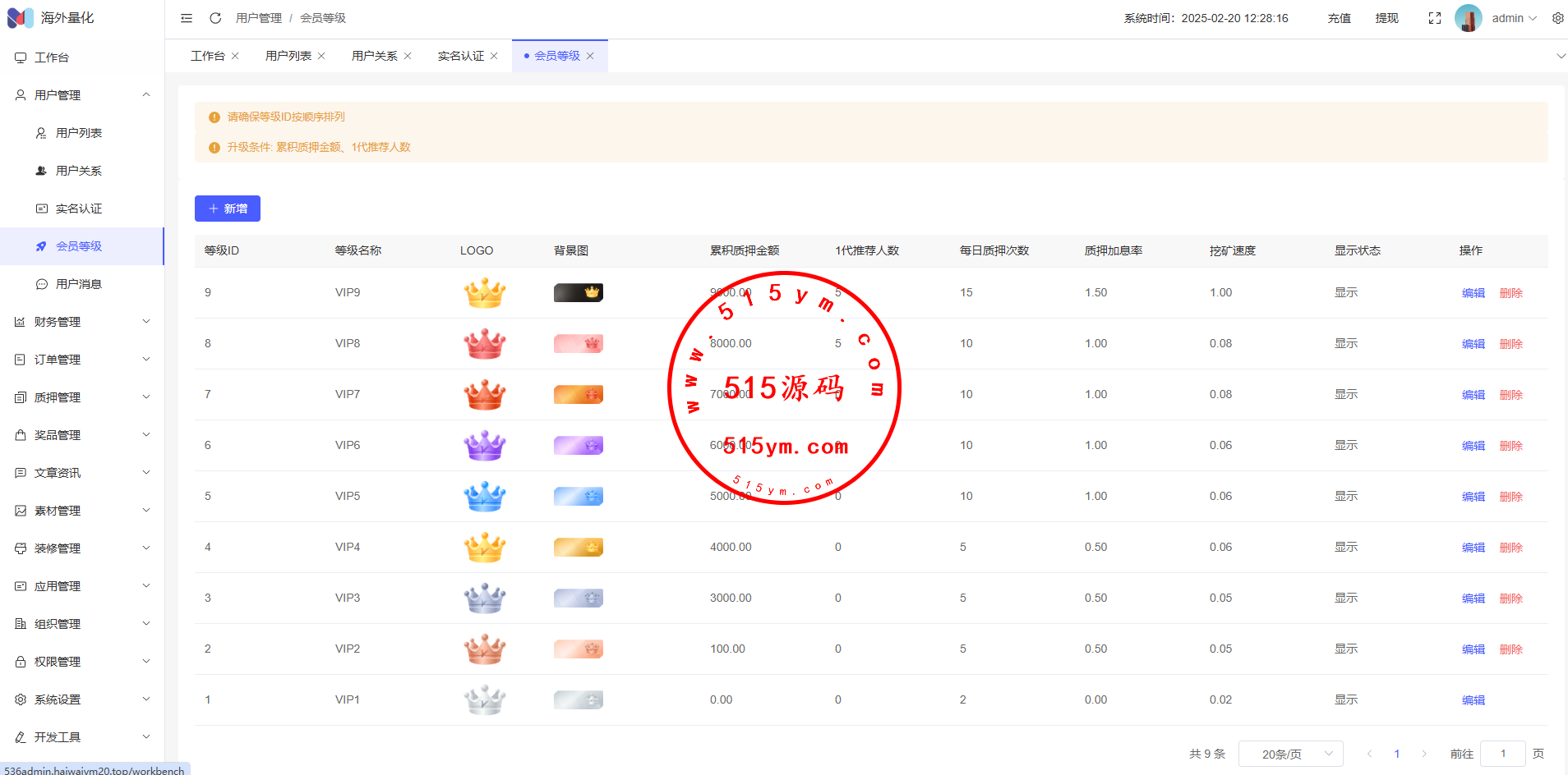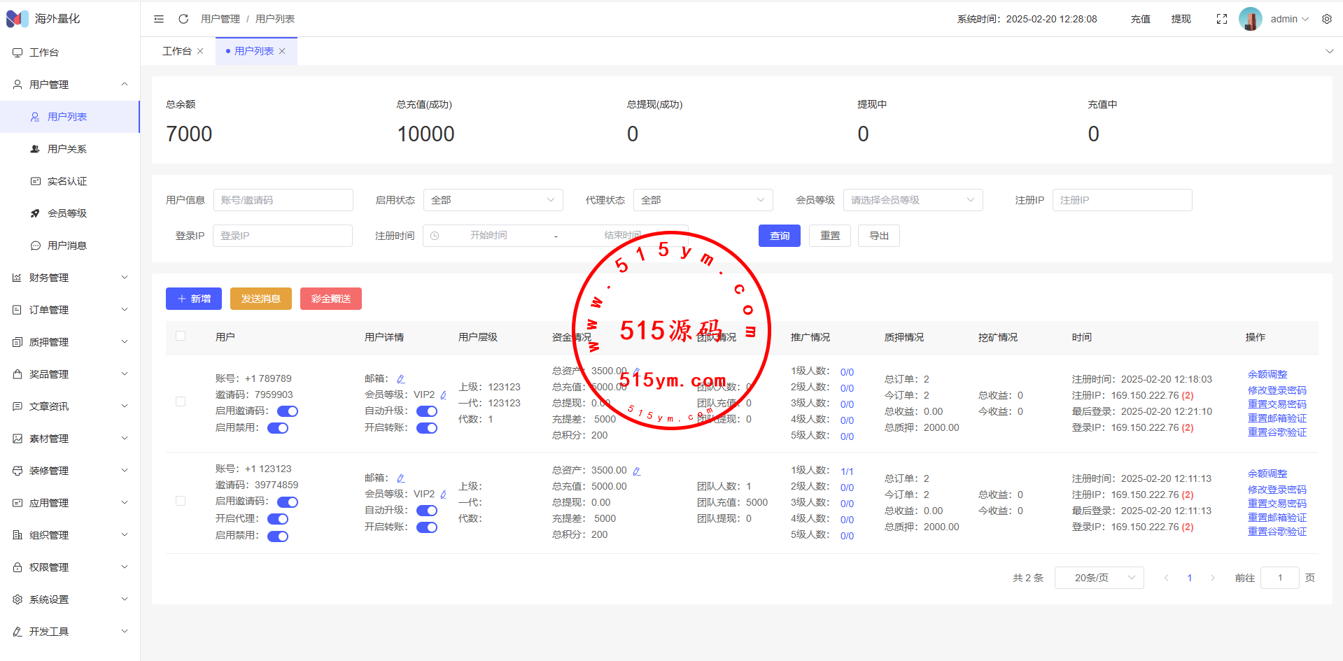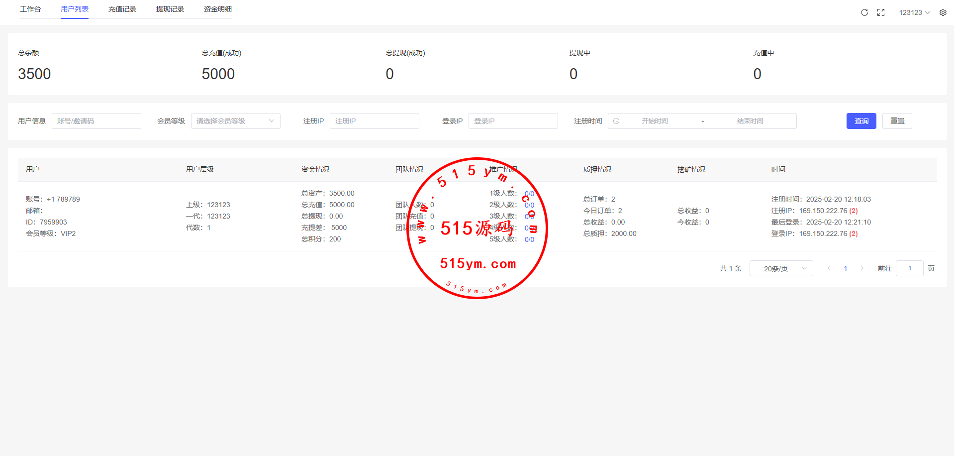 17、代理功能,后台开启用户为代理,即可登录代理端查看代理下级用户情况