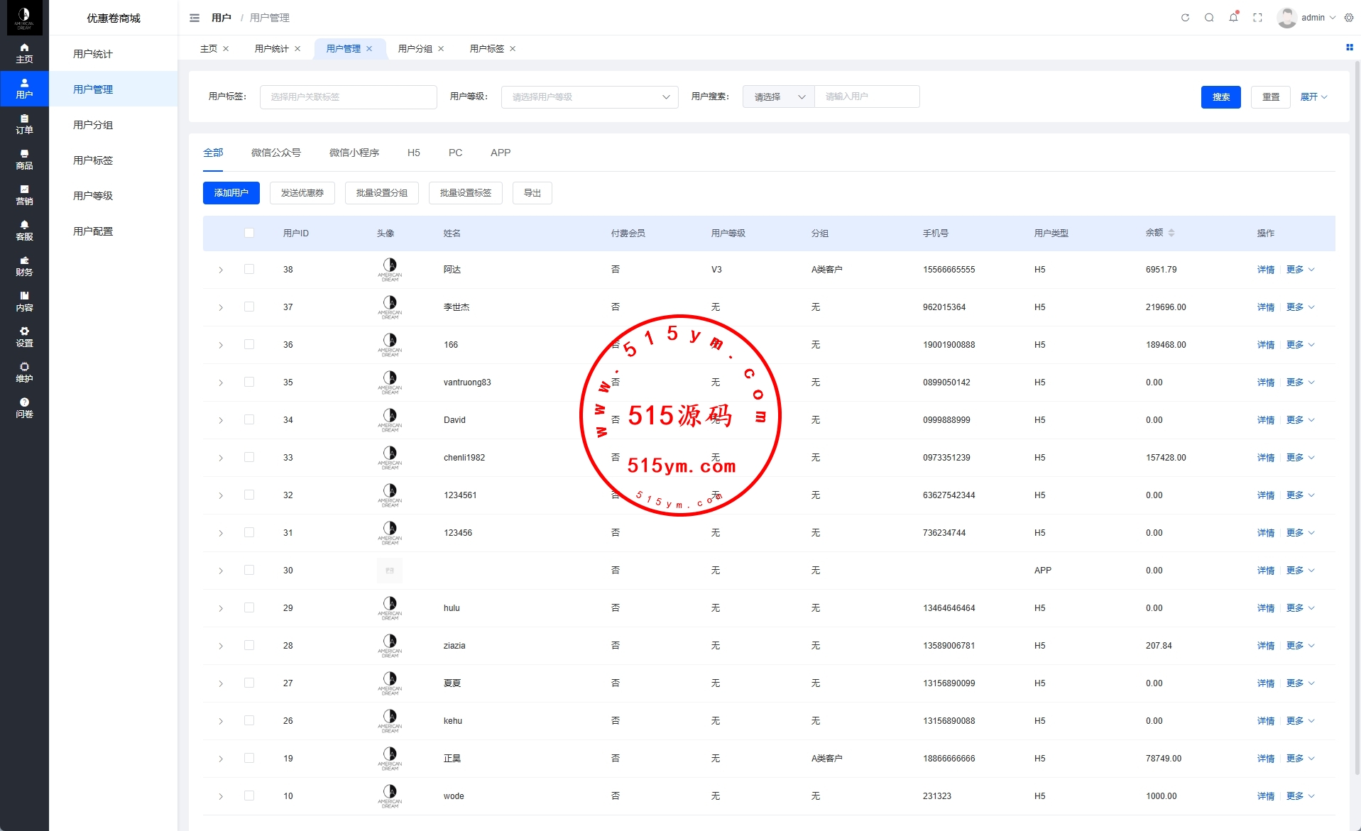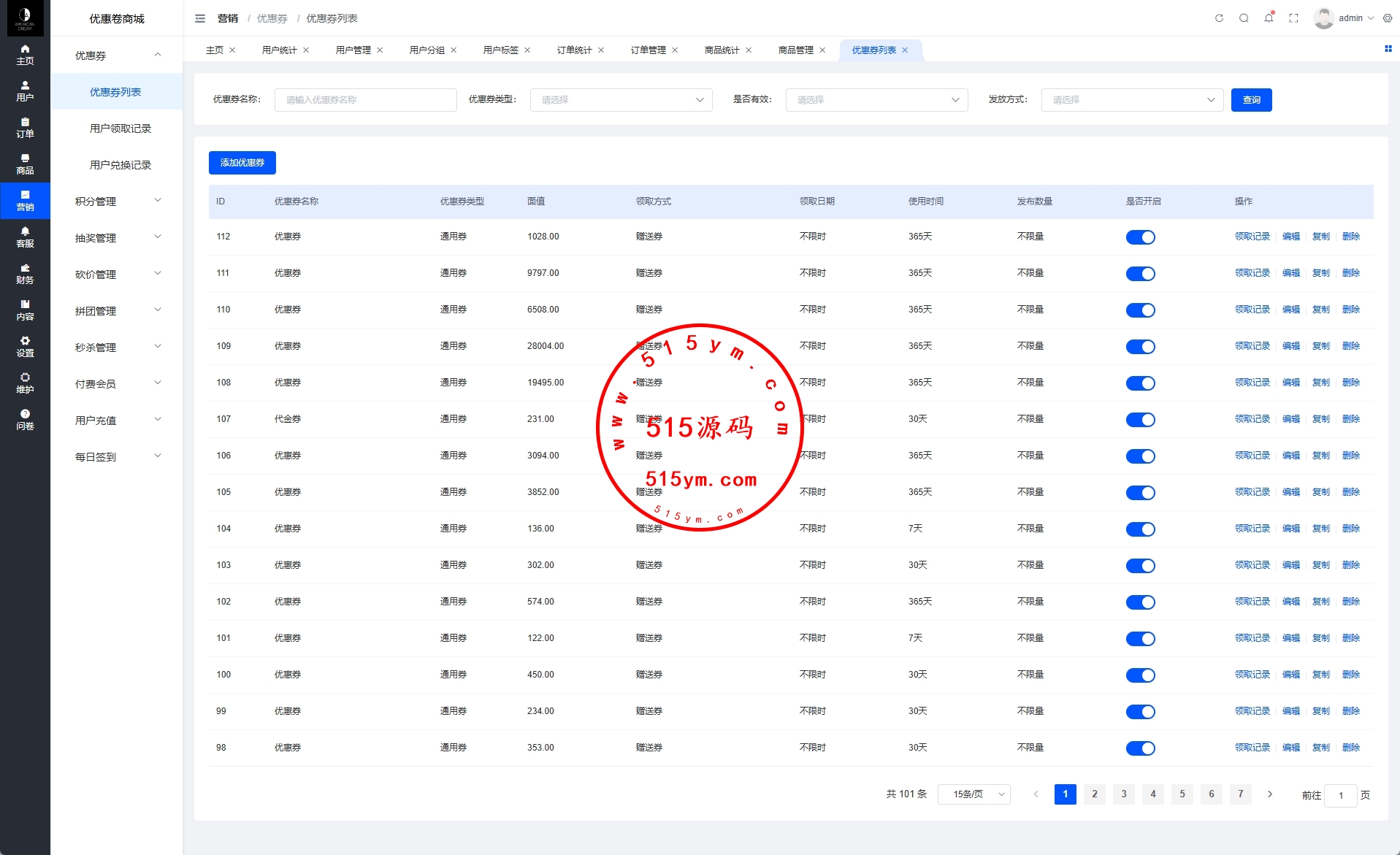 多语言优惠卷商城系统,系统自带内置客服,有客服工作台