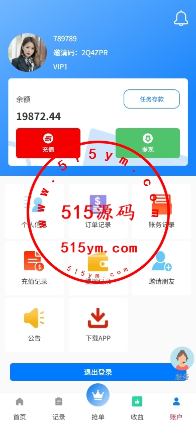 新版UI抢单系统,前端VUE开发后端PHP全开源带教程