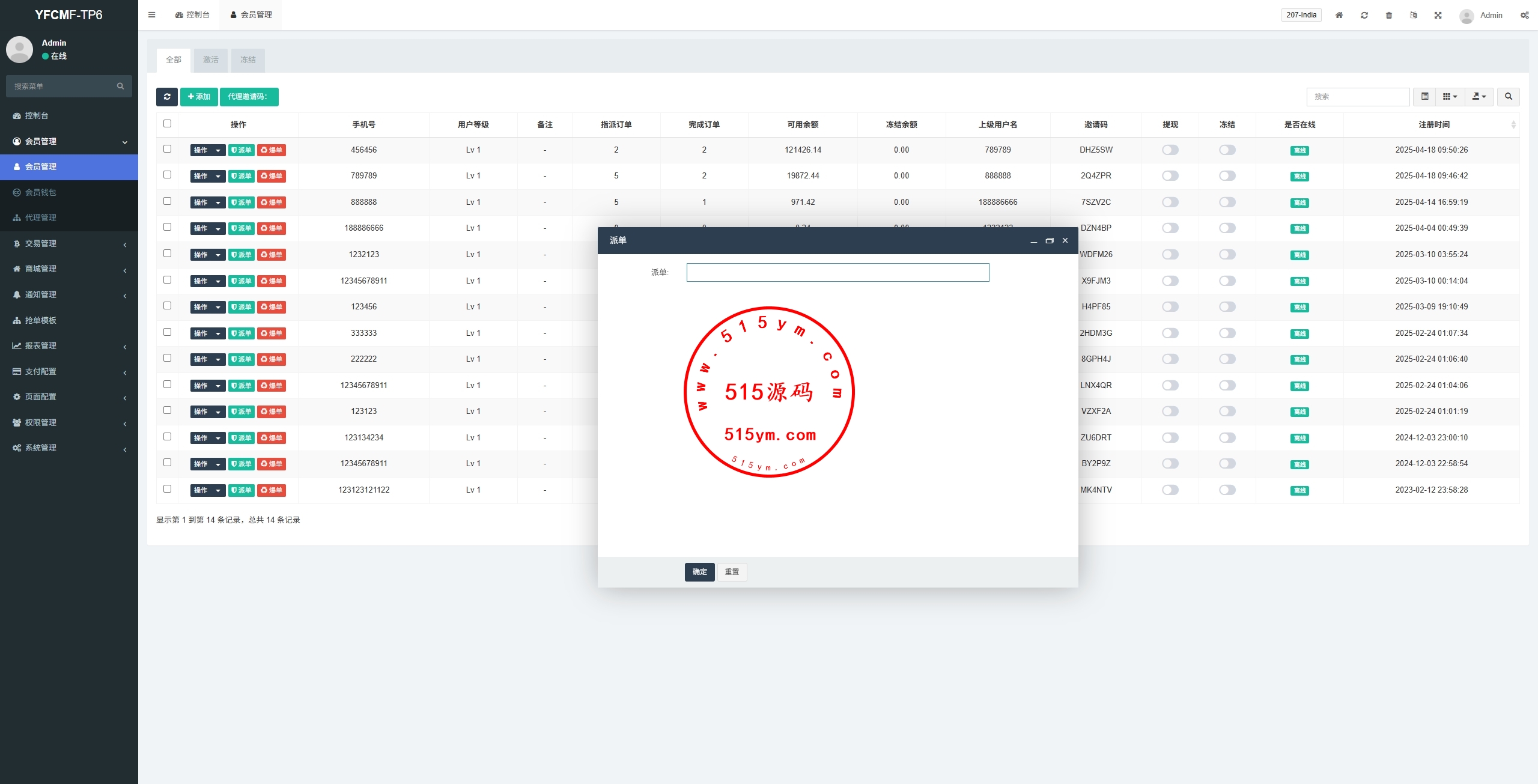 泰国抢单刷单系统/手动派单/指定派单/信用分