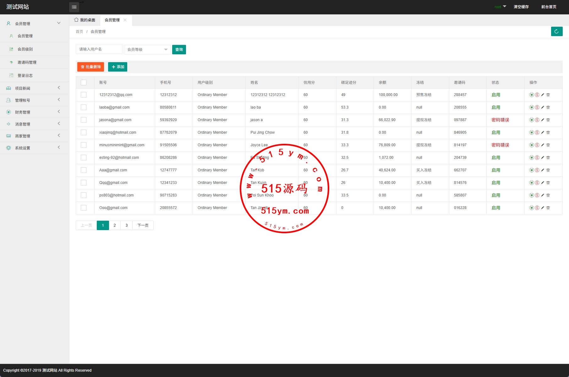 系统功能:注册问卷,投资密码,注册邀请码等功能