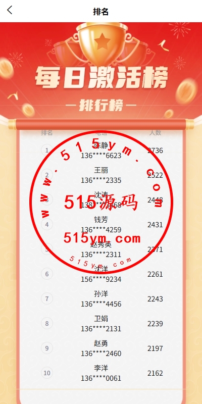 支持签到,内部转账,三级分销,排名等功能