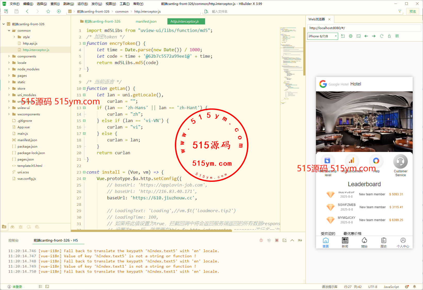 前端UI以Google为主题得酒店刷单系统