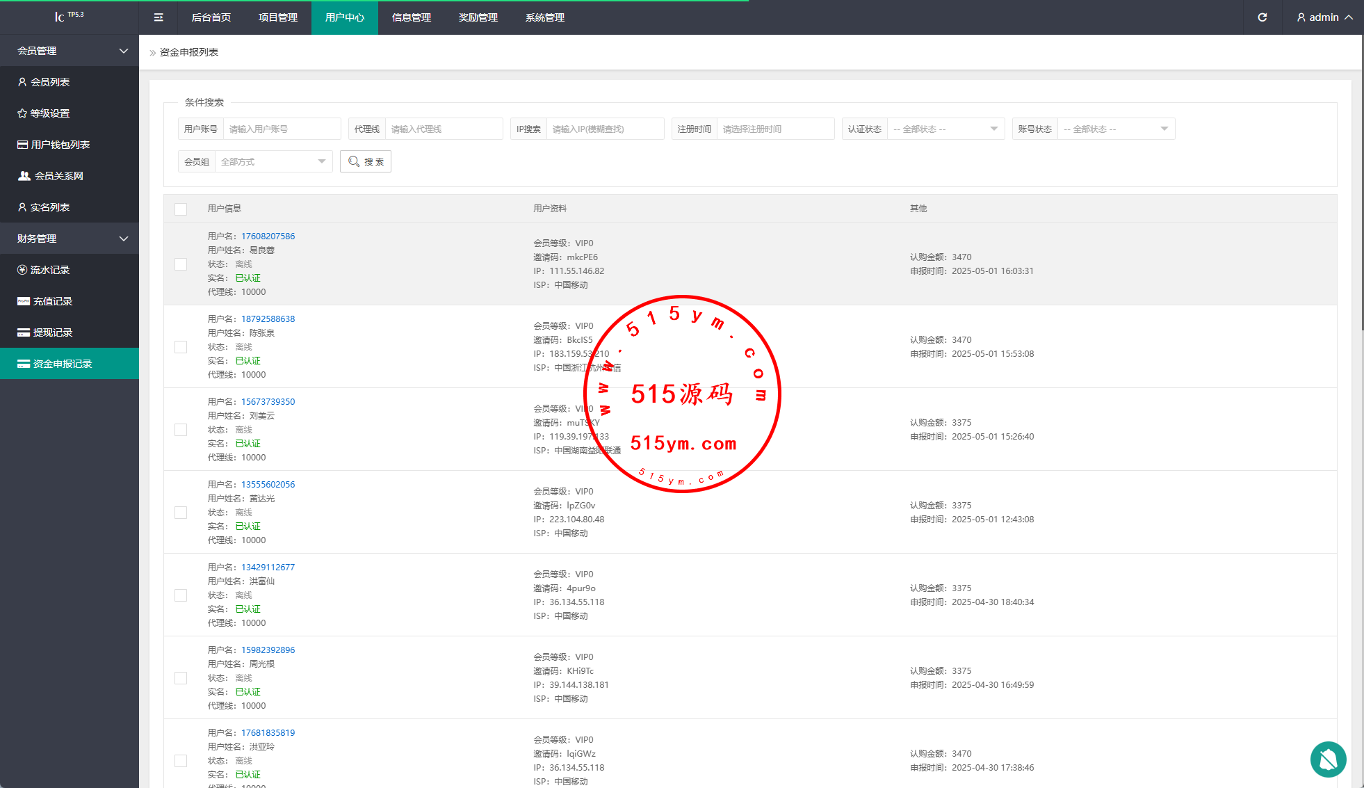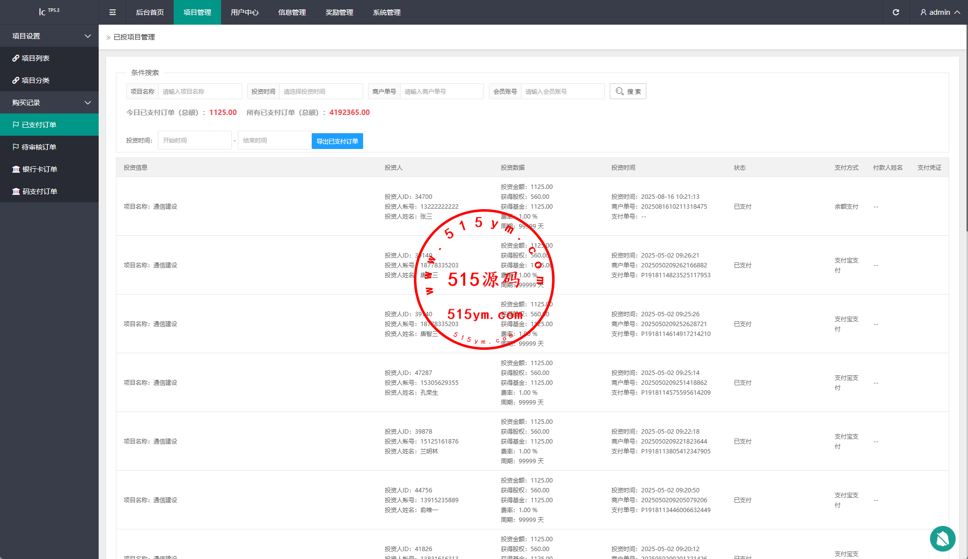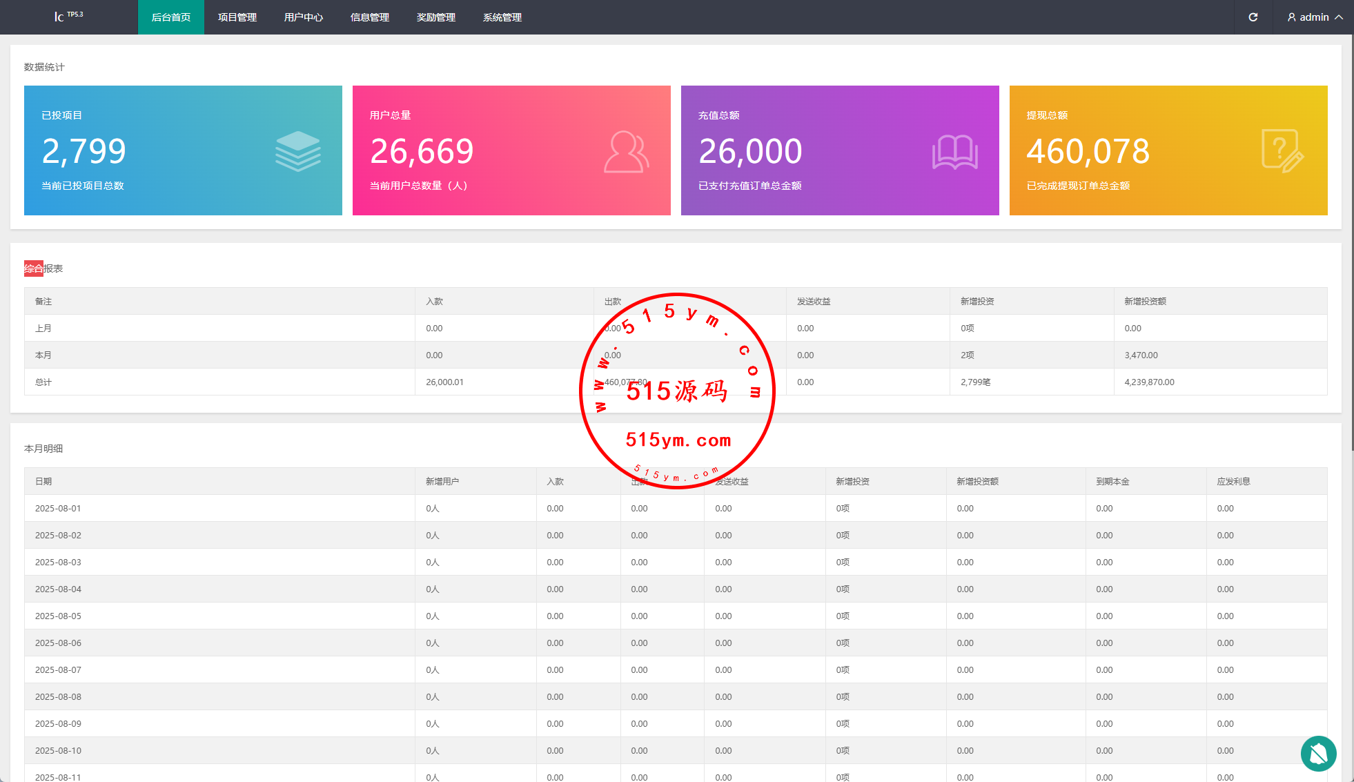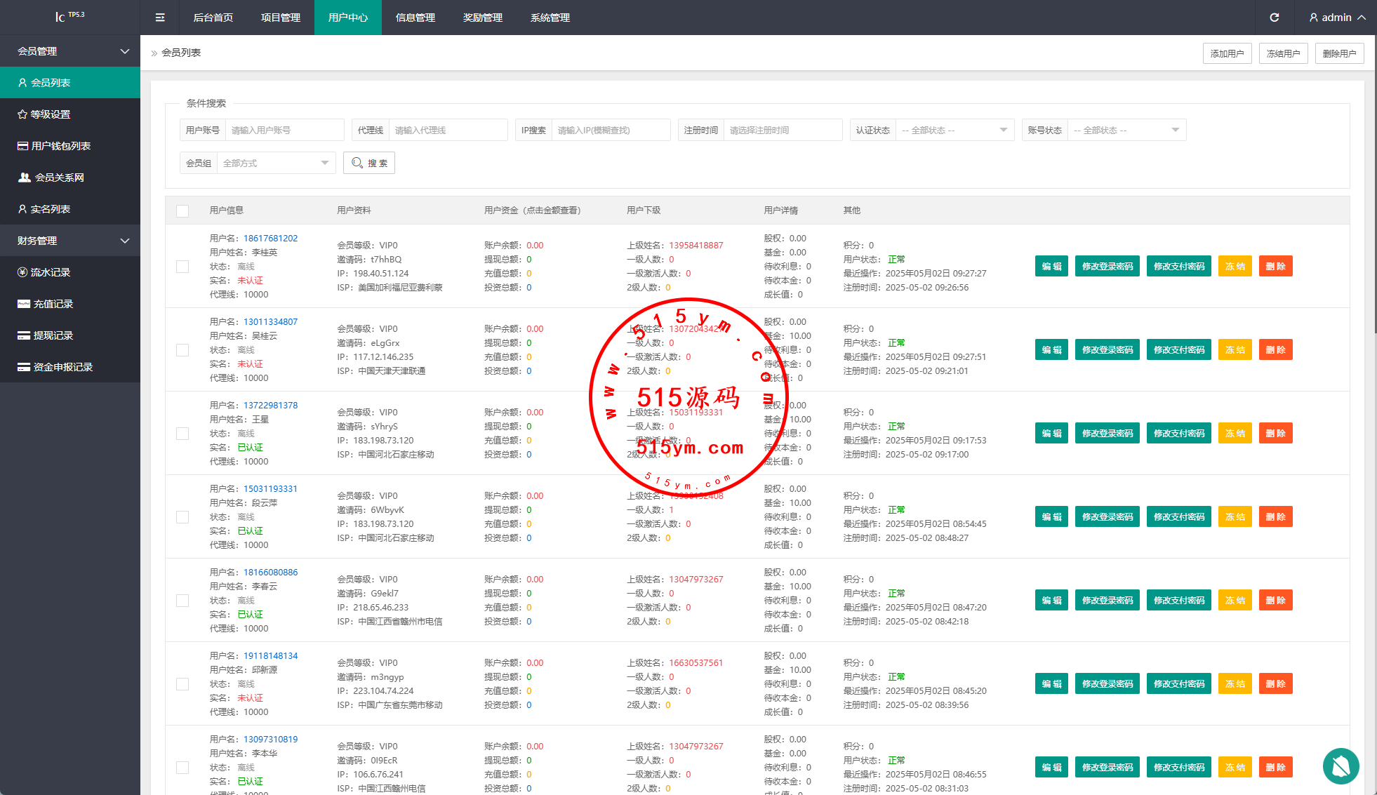 系统功能:签到、投资、邀请返利等功能