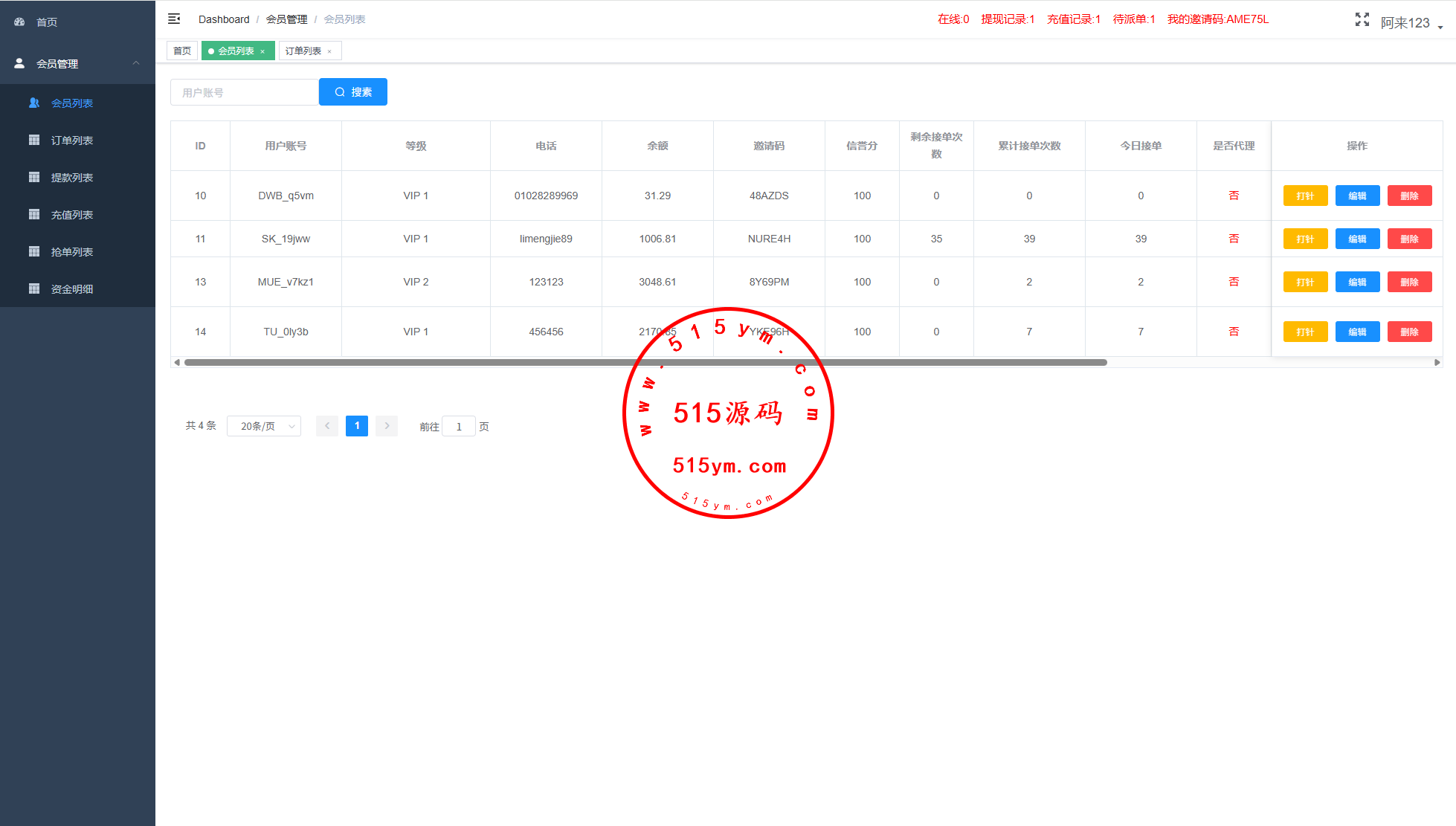 前端uniapp开发,代理VUE开发,后端thinkphp框架独立代理后台,支持打针信用分等功能玩法比较独特前端抢单需要后台或者代理后台点击付款