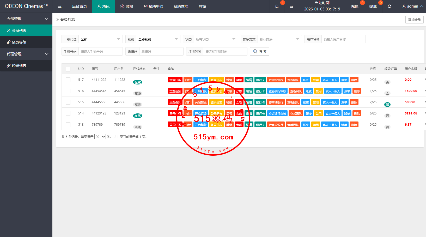 新UI影视刷单系统,前端多语言带教程系统功能:重置订单,超级打针,派单,提现地址审核,登陆日志,在线状态等功能