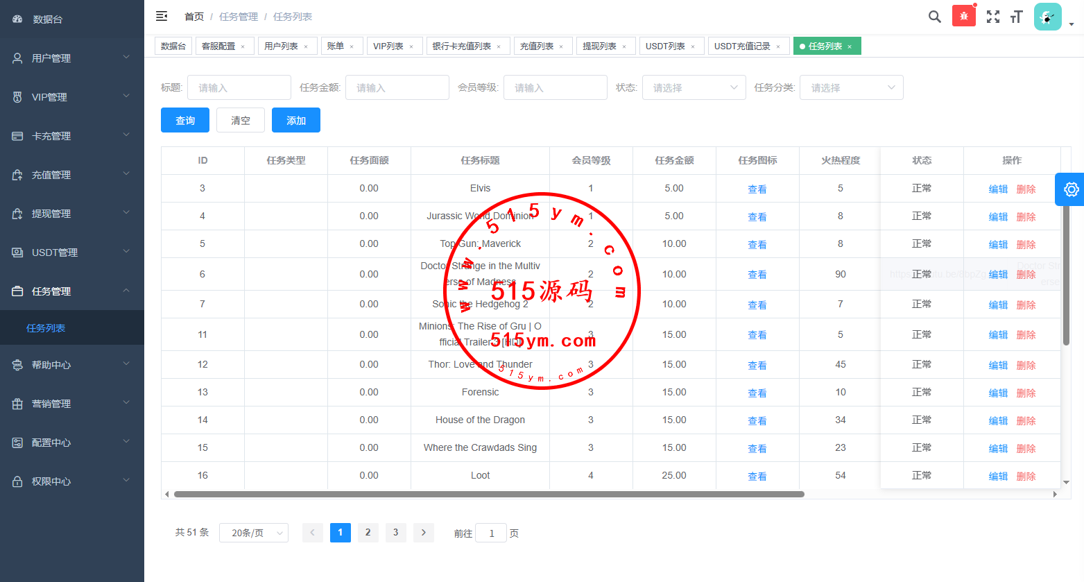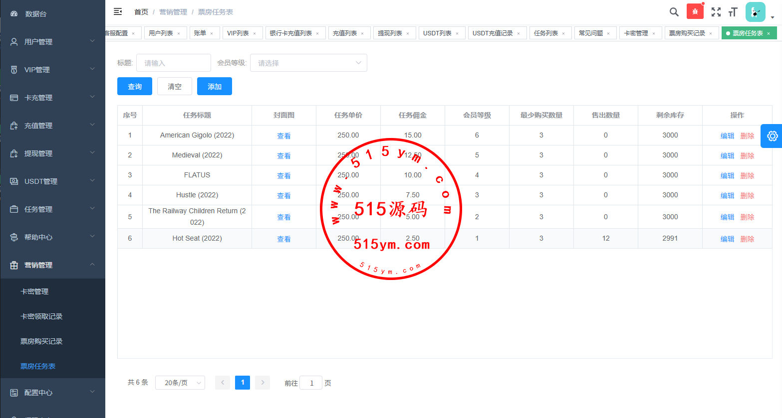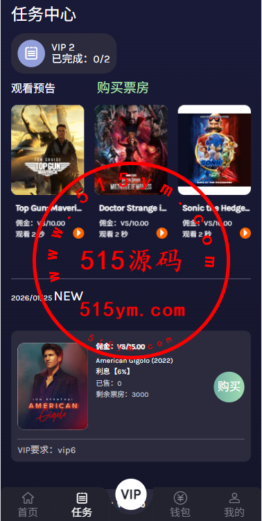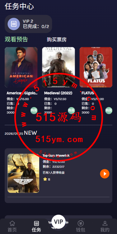 海外电影任务系统/看视频返利/电影视频投资刷单源码